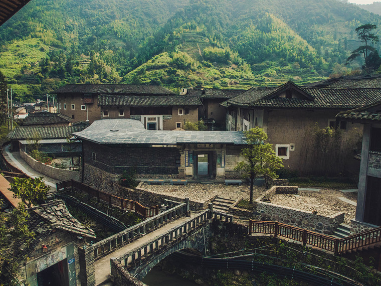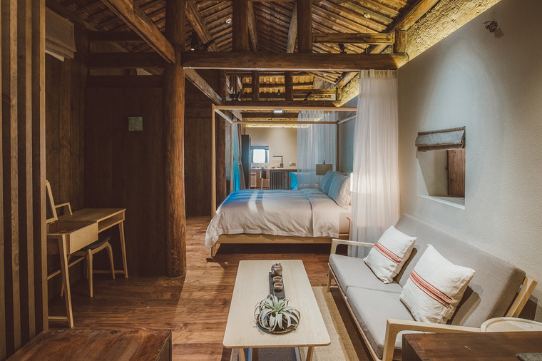 酒店內(nèi)溫馨舒適的開放空間與每棟土樓的內(nèi)部庭院相連接。這些庭院包含了餐廳、展覽空間、手工藝作坊、烹飪工作室、瑜伽工作室和兒童游樂場等一系列公共空間??腿藗兛梢栽诜块g內(nèi)用漳州特有的瓷器品嘗當(dāng)?shù)氐母涕俨?,或者在周圍的山間游玩探索,挖掘新鮮美味的竹筍。青普土樓文化行館的設(shè)計旨在打造一個既尊重傳統(tǒng)又啟發(fā)靈感的住宿環(huán)境。酒店提供種類豐富的餐飲,以及當(dāng)?shù)靥刂频钠【啤2蛷d采用新鮮的時令蔬菜和有機食材,由本土廚師帶來地道的客家美食。文化行館的持有者王功權(quán)長期致力于在酒店、金融等產(chǎn)業(yè)中推動中國傳統(tǒng)文化的發(fā)展,并將酒店服務(wù)業(yè)的水平推向一個新的高度。